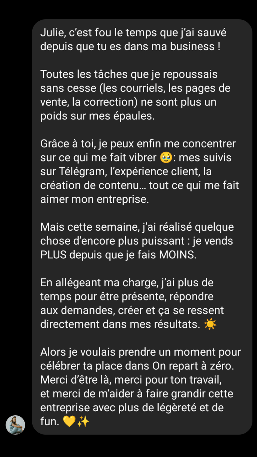 Je t’aide à déléguer, à te décharger de ce qui t’étouffe,