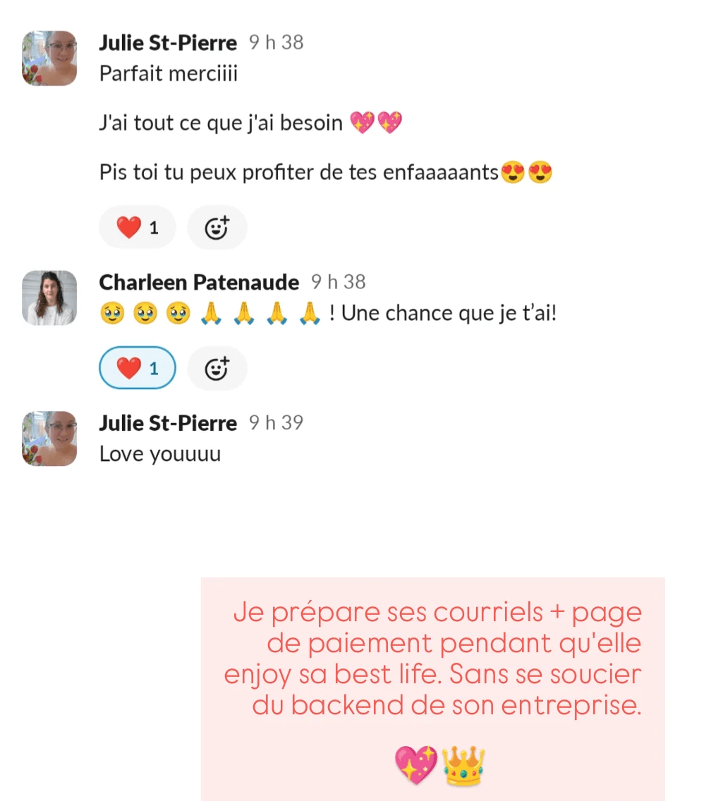 Peu importe le service que tu choisis, tu restes la queen de ton entreprise — moi, je suis là pour tenir ton back-end avec efficacité, amour et clarté.